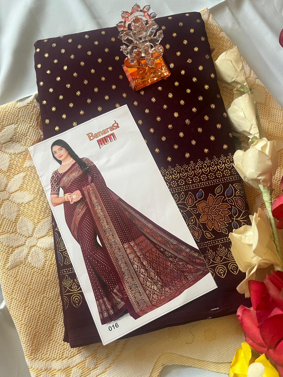 Experience timeless elegance with this exquisite Banarasi Butti Saree, woven with intricate craftsmanship from the heart of Varanasi. The saree features delicate butti motifs (small, handwoven patterns) spread gracefully across the fabric, adding a subtle charm and royal touch.